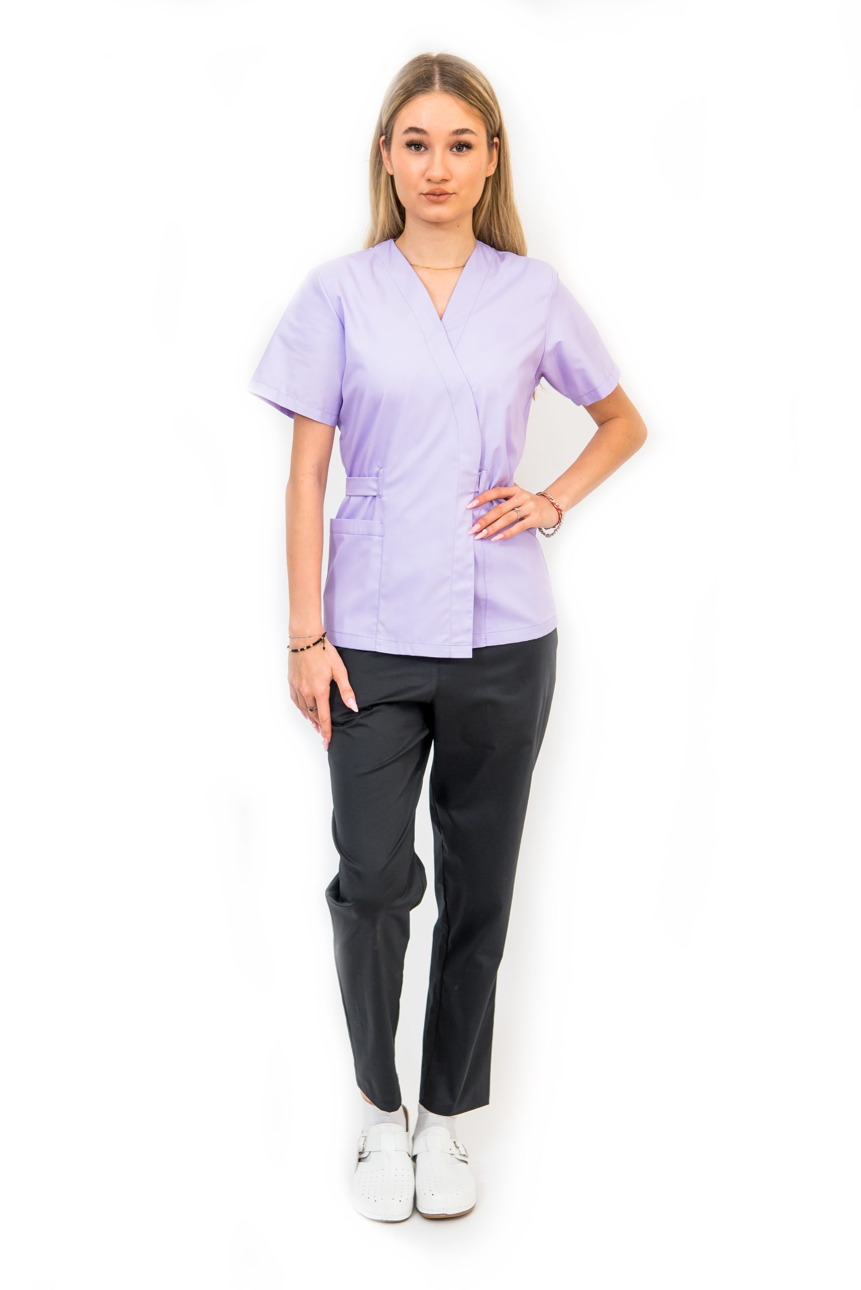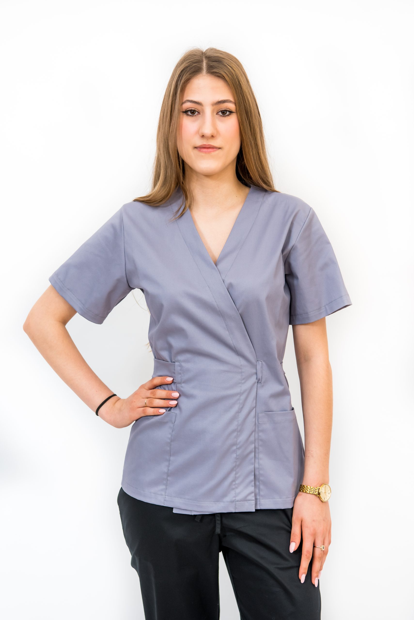 Această bluză medicală stil kimono combină funcționalitatea necesară în medii medicale cu un design modern și confortabil. Confecționată dintr-un material ușor și respirabil, aceasta oferă libertate de mișcare și confort pe tot parcursul zilei, făcând-o ideală pentru medici, asistente și personal medical.